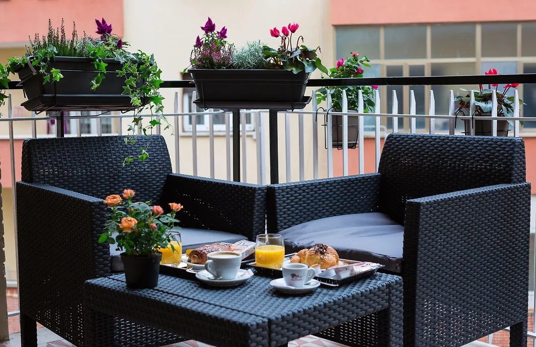 Номера с видом на внутренний дворик оснащены телевизором с плоским экраном и спутниковыми каналами, а также кофеваркой. В числе удобств собственных - биде, отдельный туалет и душ. В ванных комнатах имеются такие удобства, как туалетные принадлежности, а также биде и гидромассажный душ.
